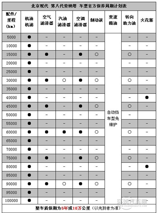 索納塔八5000公里的首保也是免費的,可以免去機油、機油濾芯以及相應工時等費用。保養周期為5000公里。