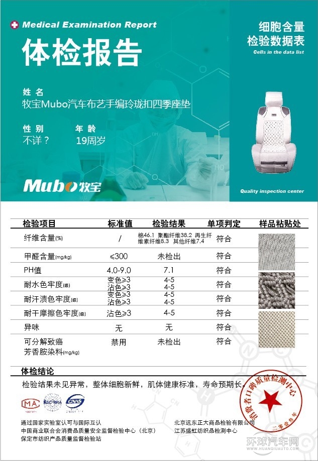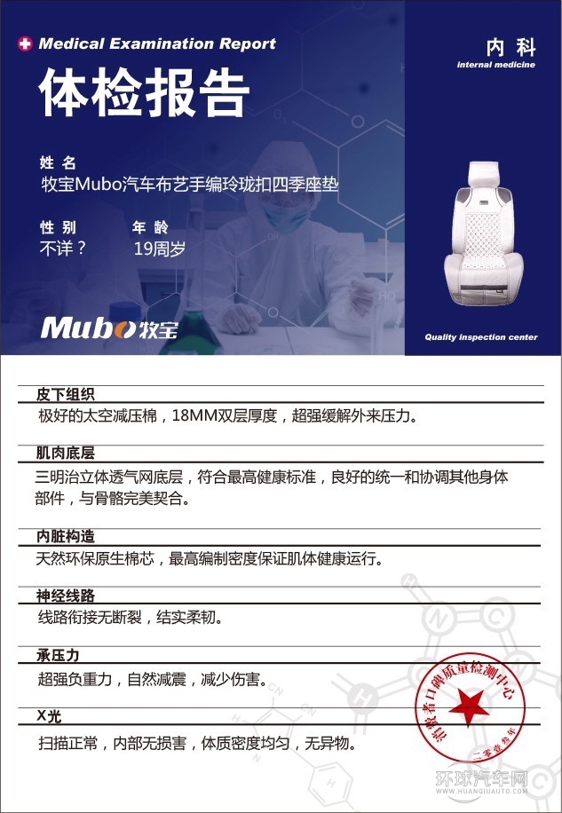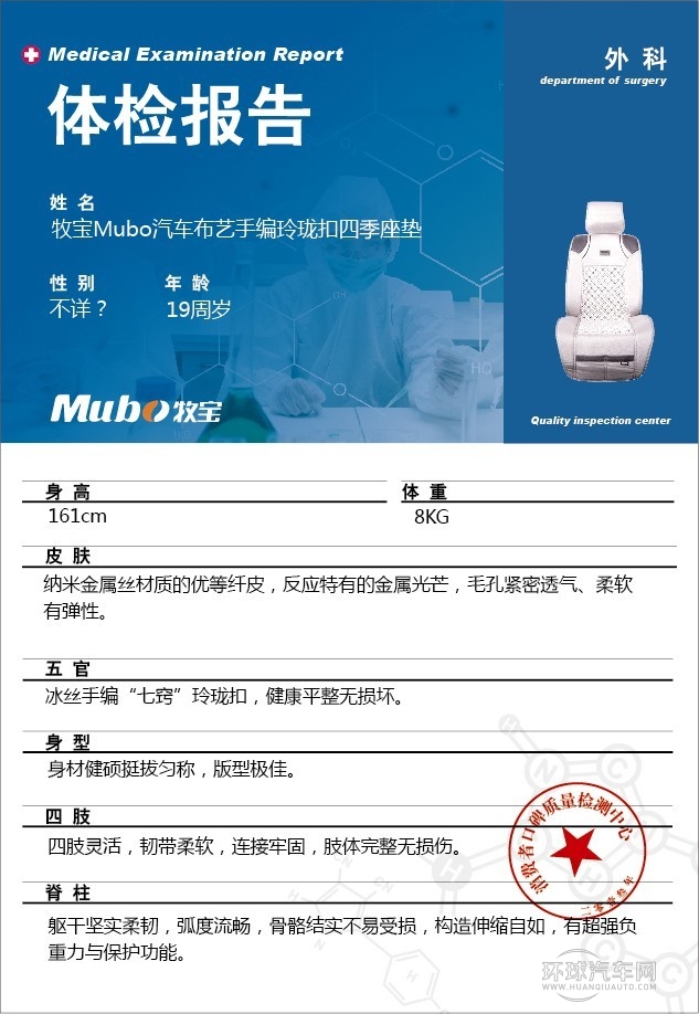 牧寶汽車布藝手編玲瓏扣四季座墊“外科”體檢報(bào)告單