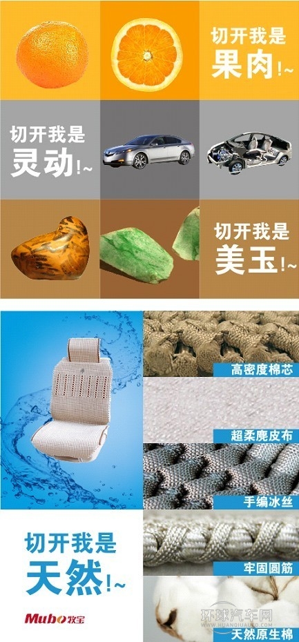 牧寶汽車坐墊“切開是天然”宣傳圖片