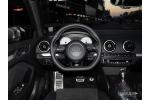 - 車內遍布了奧迪S系列專屬標志,特別是帶有鋁制換擋撥片的三輻式運動方向盤,是專門為新款S3所設計的,與A3 S-Line的方向盤相比顯得更加高檔,灰白色的儀表指針配合全黑色內飾顯得更加運動。