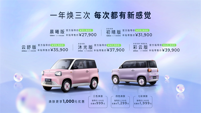【4月18日,蘭州】知豆汽車以“煥彩由我”為主題,正式發(fā)布全球首款可真正實(shí)現(xiàn)2.8億種海量潮流煥膚微型電動汽車——知豆彩虹。新車提供晨曦版、初晴版、云舒版、沐光版、彩云版五款車型可選,補(bǔ)貼后零售價(jià)區(qū)間為2.79萬-3.99萬元。為了滿足消費(fèi)者對個(gè)性潮流的向往,知豆彩虹同步推出限時(shí)尊享購車權(quán)益:4月18日至5月18日,1999元下訂,即可享4000元汽車下鄉(xiāng)補(bǔ)貼,煥膚更享 1000元優(yōu)惠!