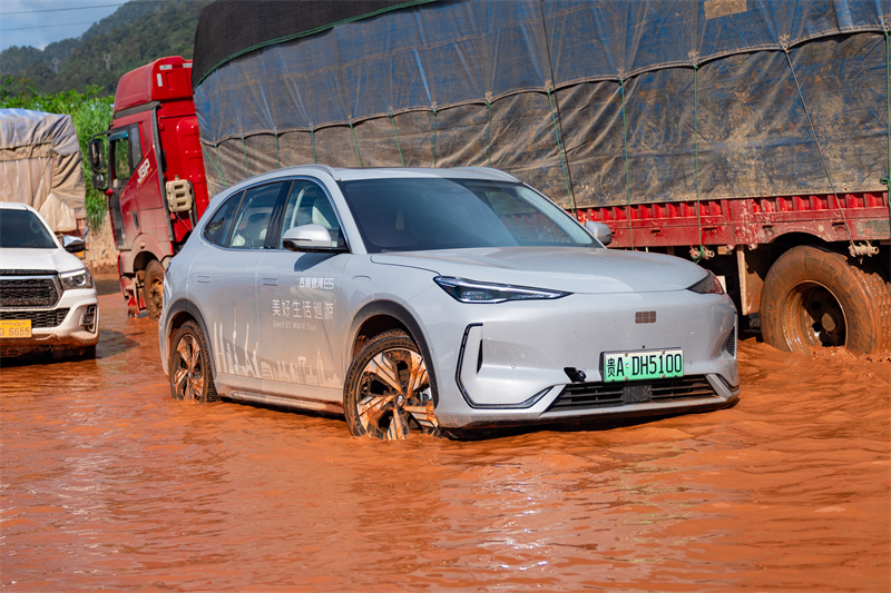 2024年9月,10輛吉利銀河E5跨越四國到達馬來西亞,全程3725km。途徑老撾時,車隊遇到百年一遇的洪澇災(zāi)害,有些地方水深超過30cm,還是具有腐蝕性的黃泥。吉利銀河E5車隊仍然全部順利、安全通過洪澇區(qū)域,并且繼續(xù)行駛2000多km,最終抵達吉隆坡。