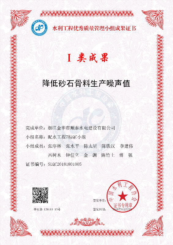 2018水利水電工程建設工法證書(環保式骨料干法生產施工工法)