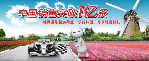 為了慶祝銷售突破1億條這一喜訊,錦湖輪胎在4-5月期間推出重磅促銷活動,回饋廣大中國消費者對錦湖輪胎的厚愛。活動期間,只要注冊成為錦湖會員或購買錦湖輪胎,即可參與抽獎活動,有機會遠赴荷蘭或韓國觀光旅游,體驗F3/AUTO GP激情賽事,或是贏取2013中國房車錦標賽CTCC門票等精美禮品,與CTCC唯一輪胎供應商錦湖輪胎一起為賽事助威。