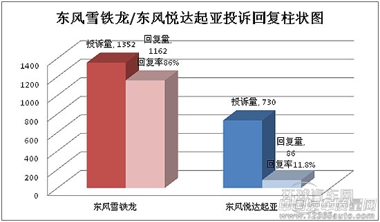 兩品牌相比而言,東風雪鐵龍的投訴回復率較高,達到了86%;而東風悅達起亞,對于消費者投訴的重視程度并不高,只有11.8%,但投訴查看率達到了92%。雖然東風雪鐵龍的回復量較大,但大部分回復內容千篇一律,多以“4S店已經(jīng)主動聯(lián)系用戶溝通,請用戶后期有問題隨時聯(lián)系客服中心或者4S店。”車主對問題解決的滿意度并不高。在競爭日益激烈的國內車市,更多的消費者會關注到車企售后如何,如果出現(xiàn)問題不予解決,或是采取回避的態(tài)度,勢必會影響到企業(yè)今后的發(fā)展。