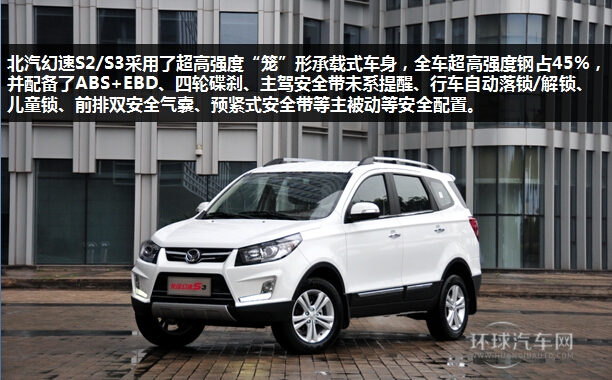 在其他安全配置方面,北汽幻速S2/S3采用了超高強度“籠”形承載式車身,全車超高強度鋼占45%,并配備了ABS+EBD、四輪碟剎、主駕安全帶未系提醒、行車自動落鎖/解鎖、兒童鎖、前排雙安全氣囊、預緊式安全帶等主被動等配置,安全性可謂滴水不漏。