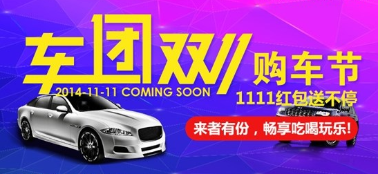本期車團網為大家準備的雙十一購車節專題活動可謂是屌絲的福音,吃貨的家園,剁手黨的天堂。那些平時極度克制自己的剁手黨們,即日起,不用在壓抑自己狂野的購物欲,立刻參加車團網雙十一購車節活動,享巨額優惠,放心大膽地買!買!買!