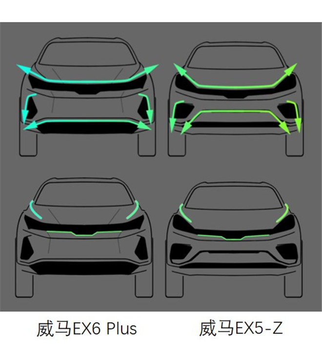 威馬汽車“輕設計”哲學在全新威馬EX5- Z上得到全面傳承,雙"Z"字型動感線條,與智能交互動態Logo燈勾勒前臉的飽滿曲面
