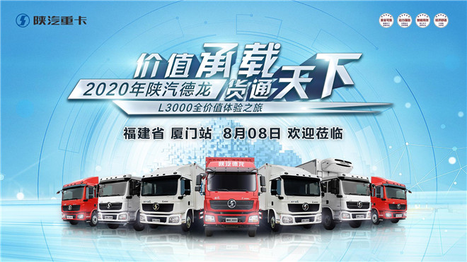 為答謝新老顧客的支持,陜汽德龍廈門德贏汽車銷售有限公司將于8月8日在廈門同安工業(yè)集中區(qū)-同安閩南農(nóng)副產(chǎn)品物流中心-324國道三個(gè)地點(diǎn)開展“價(jià)值承載、貨通天下”為主題的德龍L3000全價(jià)值體驗(yàn)之旅活動(dòng),期間特推出多重購車優(yōu)惠、超低價(jià)格、超多優(yōu)惠、超多政策,現(xiàn)誠邀各位新老客戶撥冗蒞臨!