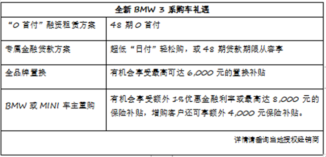都說小孩子才談夢想,成年人只聊生活,但當夢想照進現實,昔日不羈追風的少年與始終自由狂熱的靈魂再次相遇,即便跨越千山與萬水,懷揣速度與激情的駕駛夢想依舊不曾褪色。人生繞不過一臺3系,不論是渴望極致的操控,還是偏袒豪華感與科技范兒,第七代全新BMW 3系的出現恰到好處!15項高價值標準配置和12項同級獨有的豪華配置,即便是入門級320Li車型,依舊助你乘風破浪,完成人生夢想!即日起至9月30日,全新BMW 3系提供“48期0首付”的融資租賃方案,現在就購車,讓夢想不再遙遠!