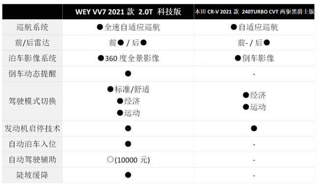 大部分購車預(yù)算在二十萬元左右的消費(fèi)者,無論是購買自主品牌還是合資品牌的SUV,對配置都充滿信心,然而WEY VV7和本田CR-V的配置差距,似乎比你們想象中的更大。我們選擇了售價 19.28萬元的WEY VV7 2021款2.0T科技版,和售價21.18萬元的本田CR-V 2021款240TURBO CVT兩驅(qū)黑爵士版兩款車型進(jìn)行配置對比,探究誰更具性價比,發(fā)現(xiàn)WEY VV7的配置更為面面俱到,無可挑剔。