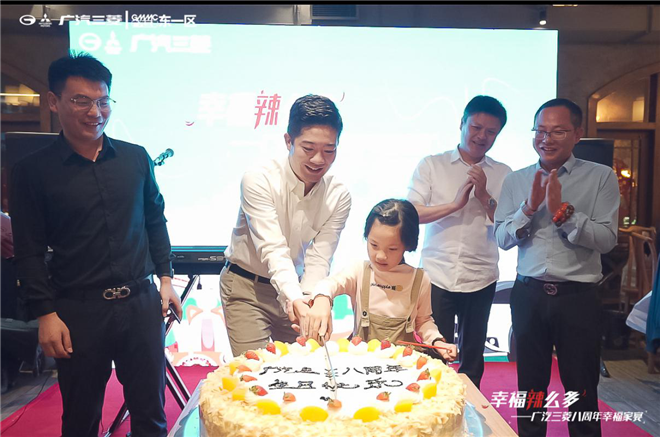 接著,廣汽三菱的領(lǐng)導(dǎo)嘉賓們在溫馨的生日歌聲中切開生日蛋糕,與家人們一起慶祝廣汽三菱八周年生日快樂。