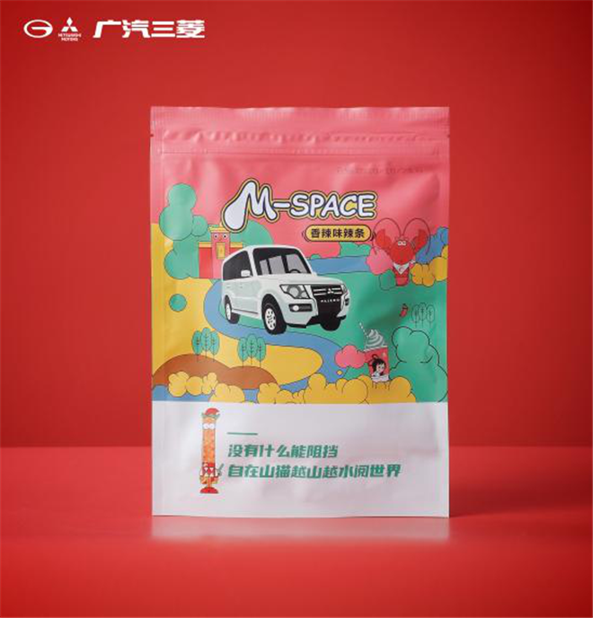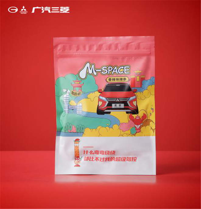 在現(xiàn)場(chǎng),廣汽三菱也正式公布了此次推出的跨界新品——廣汽三菱辣條,并將其命名為“SPICY ENERGY BAR”,把暢享辣趣的四大口味場(chǎng)景與品牌四大明星車型相結(jié)合,完美詮釋了激發(fā)生活創(chuàng)造力的“辣能量”。