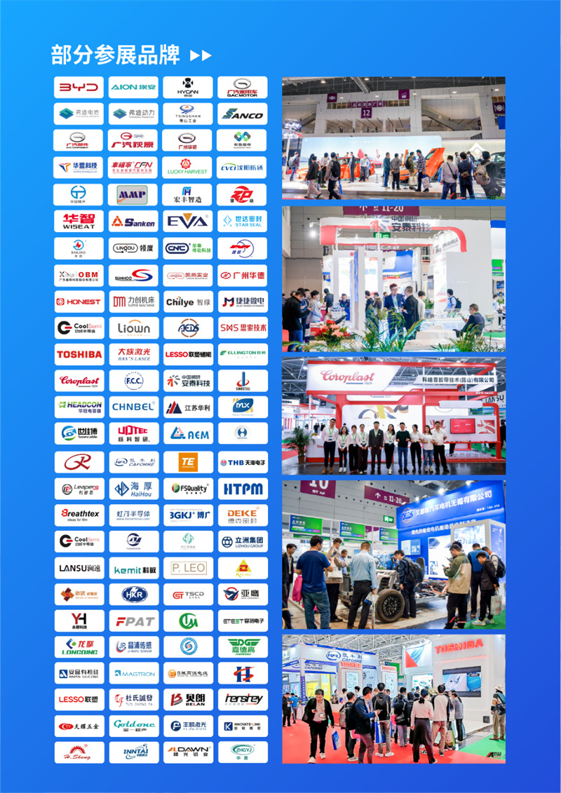 比亞迪、廣汽傳祺、廣汽埃安、合創汽車、昊鉑汽車、弗迪動力、3M、泰科電子、東芝電子、青山工業、華域汽車、聯創電子、上海保隆、巴斯巴、西門子、贏創化學、瀚川智能、艾德斯、艾利丹尼森、愛富士士、巴斯夫、大族激光、豪斯特、中邦激光、杜爾涂裝、恩智測控、奮安鋁業、佛山富士、福祿克、格康電子、廣東澳美、聯塑儲能、美信股份、世運電路、依頓電子、廣汽獲原、廣州華望、集泰股份、海力達、好利來、天海電器、金杯電工、捷捷微電、萊姆電子、南高齒、歐姆龍、法拉電子、格力新元、上海劍平、上海捷氫、圣戈班、勝拓膠帶、順科智連、中熔電氣、中車尚馳、珠海華冠、珠海華粵……這些行業頭部企業的加入,不僅為展會增色添彩,促進技術交流與合作,更為新能源汽車產業的繁榮發展帶來了無限的可能和機遇,開啟產業發展的嶄新篇章。