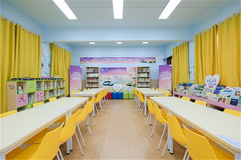 在此背景下,2025東風日產“陽光關愛·i讀計劃”選定淮河鎮小學作為本年度的幫扶點之一。隨著擁有超過2000冊全新圖書的嶄新閱讀室落成,在這個色彩明亮、桌椅配套齊全的閱讀空間里,學生們將可以暢讀古今中外各種主題的好書。同時,閱讀室還配備全套多媒體教學設備,將為教師授課、主題活動開展等提供極大便利,成為校園閱讀文化建設的新基地。