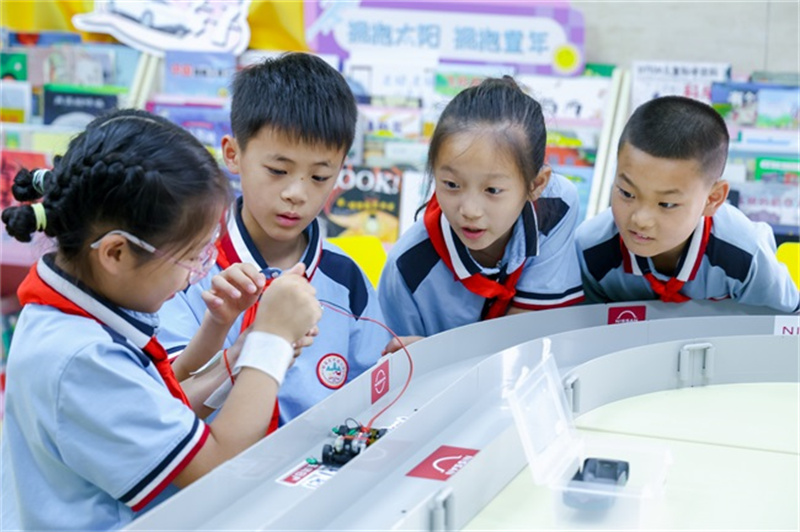 在隨后的三節“日產筑夢課堂”上,孩子們則紛紛化身“小工程師”,在動手實踐中加深對汽車知識的了解。閱讀室內,孩子們小組分工合作,熱火朝天拼裝著智能小車,近距離模擬體驗自動駕駛的原理;而到了操場,孩子們則通過手搖發電的方式為小車蓄滿電能,并展開一場“賽車大比拼”,體驗風馳電掣的樂趣。