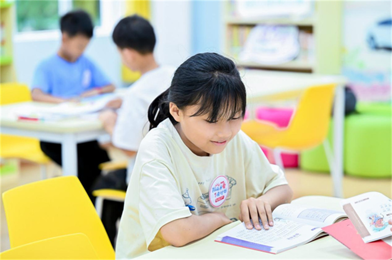 “我喜歡看腦筋急轉彎的書。”四年級二班的吳妍妍說。她和同學們坐在煥然一新的閱讀教室里,翻開嶄新的圖書,在老師帶領下參與了集體閱讀、小組討論與繪畫表達。她想象著“橋對面有另一座山,山背后還有另一座橋……我想過去看看”。