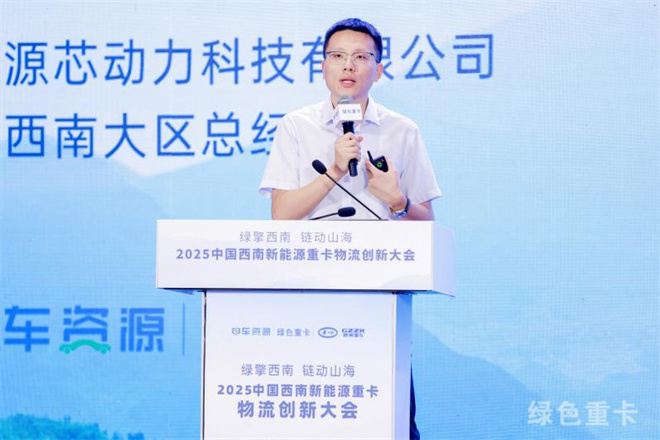 上海啟源芯動力科技有限公司西南大區總經理徐瑞璋發表了《交能融合,助力電動重卡可持續發展》的主題演講,他表示,電動重卡市場持續向好,區域銷量呈現頭部集中趨勢。2025年,電動重卡進入快速成長期。