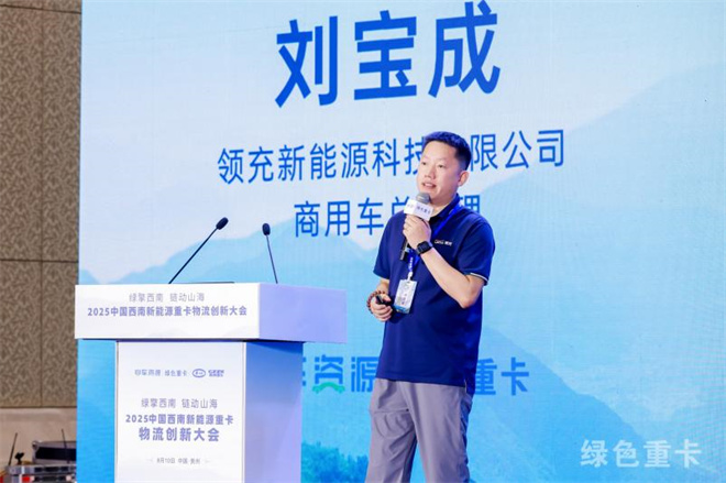 領充新能源科技有限公司商用車總經理劉寶成發表了《重卡補能的場景化驅動與行業創新發展》的主題演講,他指出,重卡充電場景具有四大特點與痛點:充電效率與經濟性是首要訴求,可靠性是持續運營的基礎,更強的環境適應性和可維護性,標準化與兼容性逐步提升。
