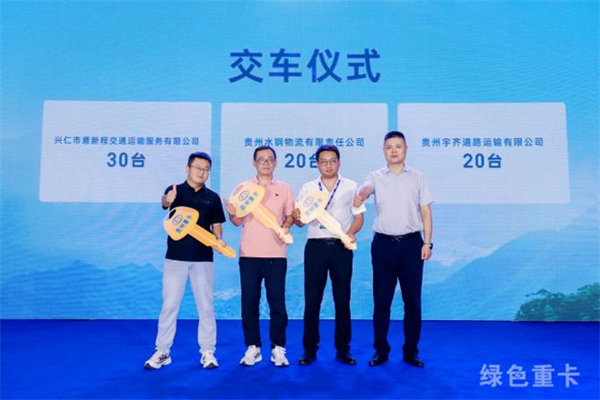 在嘉賓演講環節結束后,隆重舉行了貴州重卡簽約/交付儀式,還舉行了貴州重卡經銷商授牌儀式。本次簽約/交付活動,有力推動了新能源重卡在貴州區域的擴大應用,助力電動貴州。