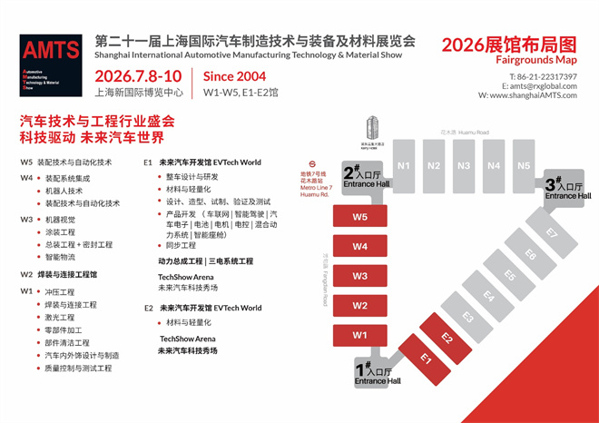 「AMTS汽車技術與工程展」將于2026年7月8-10日,再次登陸上海新國際博覽中心W1-W5, E1-E2館,預計將匯聚來自世界各地850家展商參展,吸引70,000專業觀眾到場參觀,為海內外汽車技術與工程領域系統集成商、一二級供應商、整車及零部件研發與制造工程人員搭建一站式交流平臺。