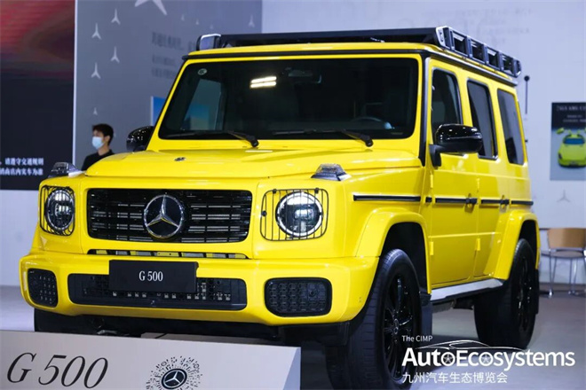 奔馳帶來時下熱門的AMG車型GT40 和CLE 53 ,以及G500定制版專業越野套裝版。這款車采用醒目的電氣石黃色車漆,配備原廠專業越野組件,包括大燈保護網、車頂行李架、黑色運動輪轂等,強化了硬派越野氣質。