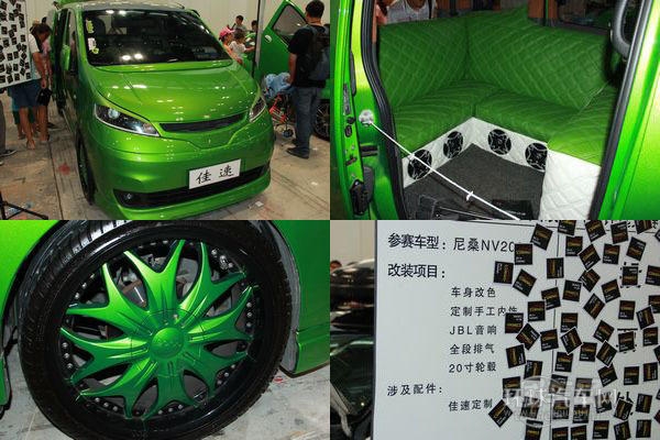一提到商旅車(chē),出現(xiàn)在腦海里的大都是像埃爾法、唯雅諾這樣三五十萬(wàn)的車(chē)型,要想再10萬(wàn)元上下找出一輛車(chē)型幾乎不可能。在本屆車(chē)展上就有這樣一款起步價(jià)很便宜的NV200改裝的商旅車(chē),翠綠的車(chē)身在大街上的回頭率一定超過(guò)100%。內(nèi)飾的改動(dòng)則更加愜意,車(chē)主拆掉了原來(lái)的兩排座椅,用一圈同樣翠綠的軟包“沙發(fā)”取而代之,要不是攔著,我一定會(huì)上去體會(huì)體會(huì)。