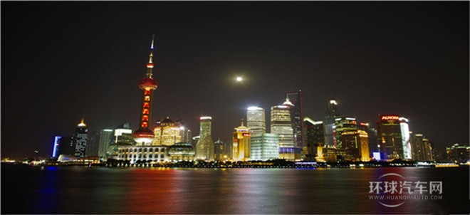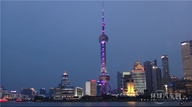 從遠(yuǎn)處看,中間的東方明珠塔和兩邊楊浦大橋和南浦大橋,巧妙地組合成一幅二龍戲珠的巨幅畫卷。