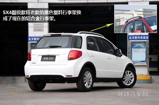 天語SX4酷銳款車身尺寸與老款沒有區別,長/寬/高分別為4135*1755*1605mm,軸距為2500mm,而低配車型由于沒有車身外包圍,因此車身尺寸要小一些,為4115*1730*1605mm。