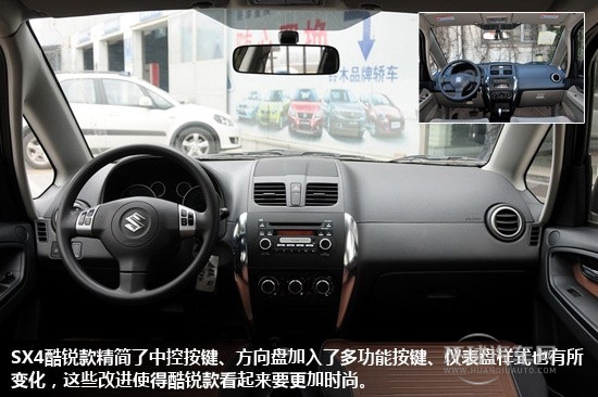 相比老款,SX4酷銳款前臉有很大的變化,前燈組棱角更加明顯,與前進氣格柵連為一體讓前臉看上去更寬了,符合當下時尚潮流。另外下進氣口與霧燈也連為一體,"L"型霧燈加上鍍鉻亮條的裝飾時尚感更強。