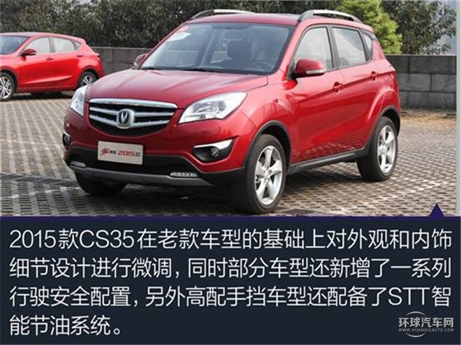 2015款CS35在外觀上增加了亮點設計(五幅輪圈,LED日行燈),新增了動力性能更為出色的1.5T引擎,自動啟停技術,并對實用及安全配置進行了升級,同時高配車型還追加了諸如ESP,疲勞檢測等主動安全配置。2015款CS35的推出,進一步提升了產品競爭力,將使長安CS35繼續領跑國產小型SUV市場,成為Z值得購買小型SUV車型。