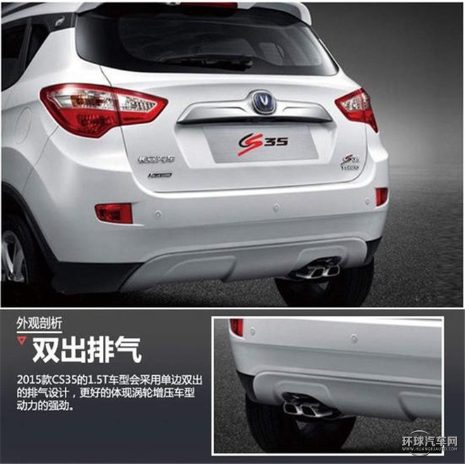 2015款CS35 1.5T車型的排氣管改為單邊雙出式樣,這樣的排氣設計在低調中顯出性能味道,是歐系小鋼炮所慣用的設計,今后在路上看到雙出排氣的CS35,可不要去挑逗哦!