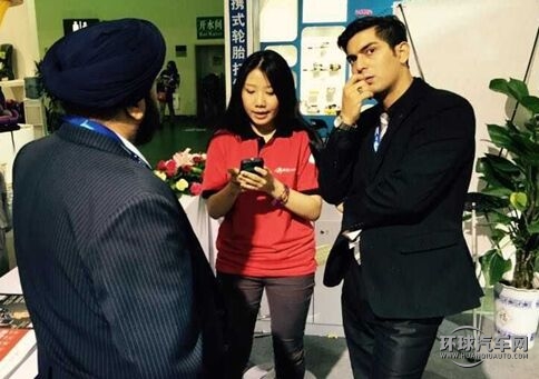 兩位老外來到養(yǎng)車寶展館內(nèi),與工作人員熱情交流,顯然他們被養(yǎng)車寶這款創(chuàng)新手機應用深深吸引住了,期待養(yǎng)車寶能走出國門揚名海外。