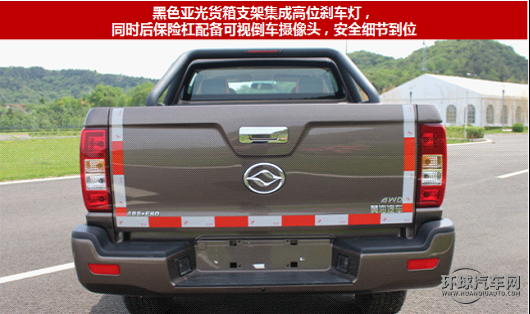 粗壯結實的黑色亞光貨箱支架冷峻且飽滿,中央位置集成高位剎車燈以警示后車保持安全距離,后保險杠下方還配有倒車雷達(運動版)或高分辨率可視攝像頭(至尊版),充分保障了行車安全。
