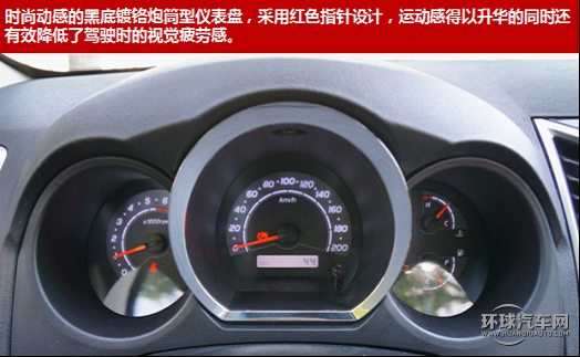 時尚動感的黑底鍍鉻邊框炮筒型儀表盤,采用紅色指針設計,運動感得以升華的同時還有效降低了駕駛時的視覺疲勞感。