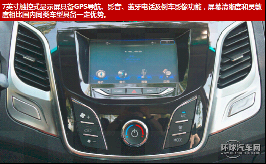 中控臺空調出風口采用亮銀色邊框,而觸控屏周圍則配合黑色鋼琴烤漆,整個中控面板典雅而有品質,7英寸觸控式顯示屏具備導航、影音、藍牙電話以及倒車影像等系統功能,且屏幕的清晰度和靈敏度都相當不錯。