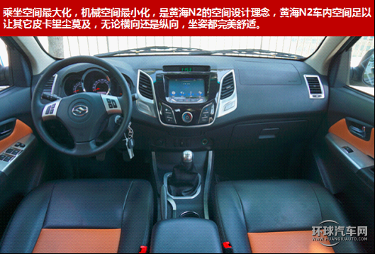 乘坐空間Z大化,機械空間Z小化,是黃海N2的空間設計理念,得益于黃海N2超大的外形尺寸以及合理的空間利用,其車內空間足以讓其它皮卡望塵莫及,寬敞有余的頭部和腿部空間,使得無論橫向還是縱向,坐姿都完美舒適。