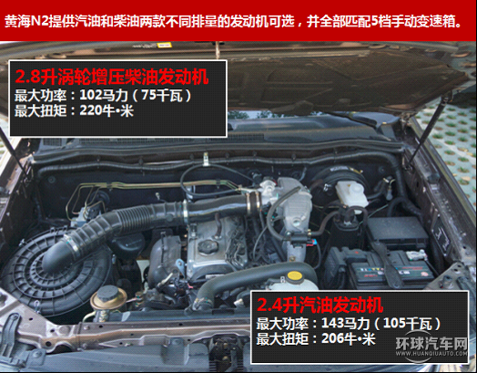 黃海N2提供兩款不同排量的發動機選擇,并全部搭配5檔手動變速箱,其中代號為JE493ZLQ4CB的2.8L五十鈴柴油發動機擁有75KW的Z大功率和220N/M的Z大扭矩,具有動力強勁、油耗經濟、超低噪音、技術成熟、維保低廉等諸多特點;而代號為4G69S4N的三菱技術汽油發動機,Z大功率為105KW,Z大扭矩為206N/M,采用美國德爾福多點電噴系統,具有大功率、低轉速大扭矩、低油耗、動力充沛、血統純正等諸多優勢。