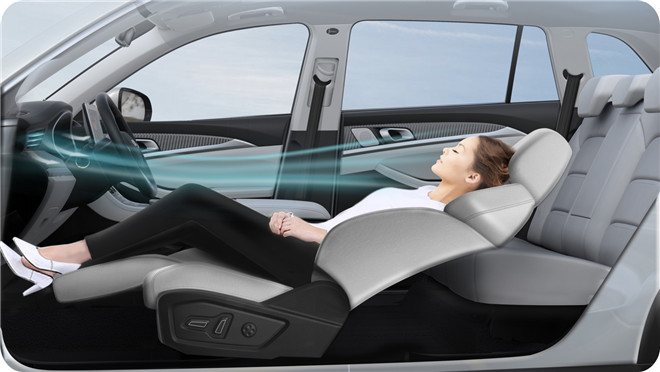 尤其是全新的“健康車生活”概念,天美ET5全球首創的健康午休睡眠系統,為眾多為生活事業奮斗打拼的人們,提供了一個家之外的,有尊嚴的小憩空間。用戶只需輕觸車機屏幕,打開“健康午休”模式,就能在10向電動調節座椅上來個徹底的放松。而為了給用戶提供更健康的午休環境,天美ET5還配備PM2.5,高效空調濾芯、負離子凈化器,與高溫循環消毒系統,打造森林級的清新空氣。