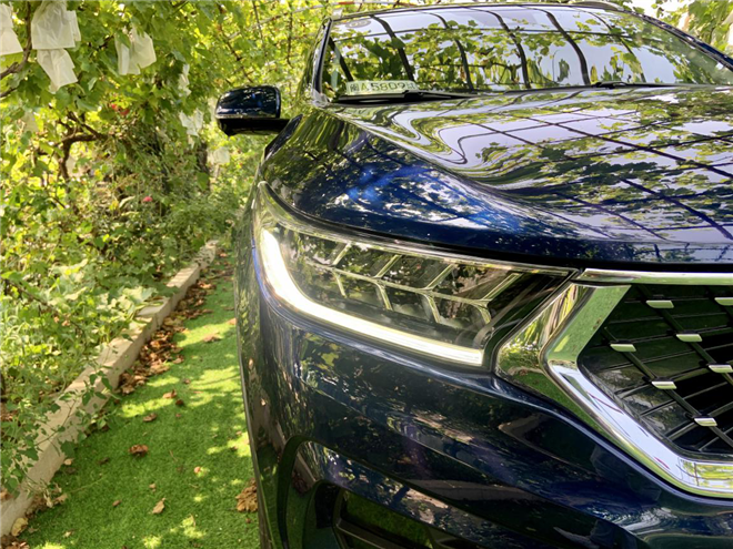 這臺全新DX7星躍最抓人眼球的,當屬全新的“星空之翼”前臉,深邃且充滿力量感。穹頂式矩陣排列進氣格柵搭配放射性星點裝飾包裹著LOGO,如眾星捧月般璀璨;由16顆LED組成的星羽式全LED大燈組光彩奪目,照射距離可達200米以上;下保險杠造型如蓄力拉滿的弓箭,再次為前臉增添張力,運動感十足。