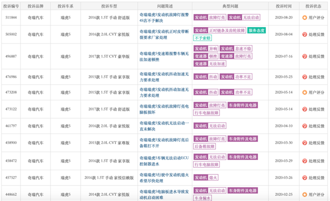 奇瑞出品,好壞憑運(yùn)氣。據(jù)數(shù)據(jù)顯示,奇瑞三大件依舊是投訴的重災(zāi)區(qū)。此外,車燈不亮、發(fā)動(dòng)機(jī)故障燈亮及抖動(dòng)、機(jī)油乳化、變速箱異響、制動(dòng)異響等方面的問題投訴率也是高居不下。對于歷經(jīng)時(shí)光洗禮的老牌國產(chǎn)車企來說,這是很不可思議的。