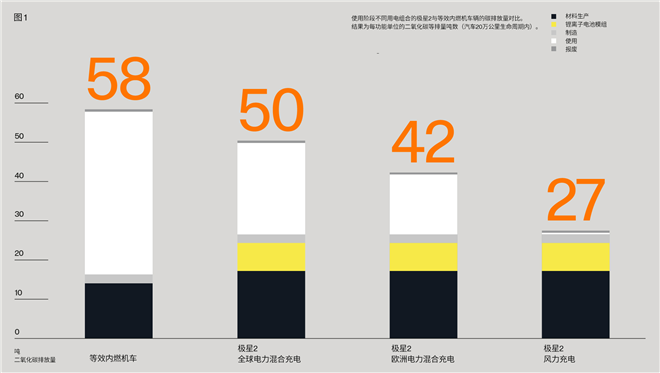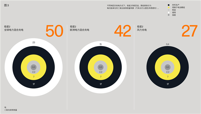 極星2不同材料生產和加工中產生的碳排放