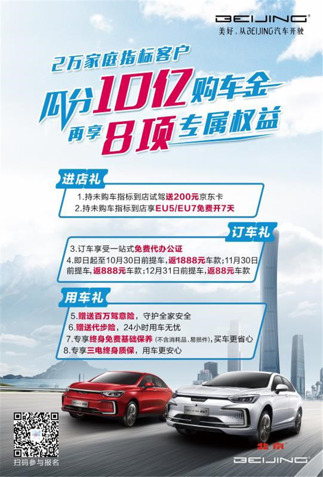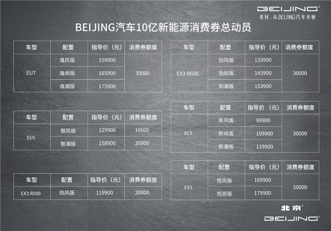 當(dāng)前,為了積極響應(yīng)北京消費(fèi)季的號(hào)召,BEIJING汽車在北京地區(qū)發(fā)放10億元新能源消費(fèi)券。以BEIJING-EU7為例,通過(guò)BEIJING汽車京東、天貓官方旗艦商城,可領(lǐng)取3萬(wàn)元的購(gòu)車消費(fèi)券。