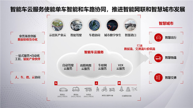 云服務將有效聯接人、車、路和智慧出行、智慧物流、智慧交通等應用場景,打通數據流、交通流和價值流,使能業務創新和數據創造價值,推動智慧城市發展。