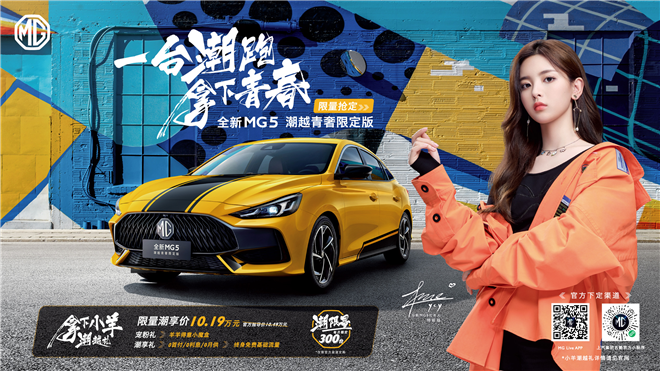 全新MG5潮越青奢限定版“限量潮享價”僅需10.19萬元,現在下訂更可享三重“拿下小羊潮越禮”,包含羊羊得意小魔盒、0首付/0利息/0月供、終身免費基礎流量。每月限定300臺,快和楊超越一起開啟“超越期待”的潮流駕駛生活。