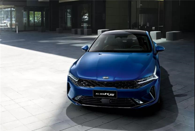 全新一代K5基于起亞第三代i-GMP平臺打造,采用家族式虎嘯前臉,上下分層的格柵設計輔以引擎蓋上隆起的線條,正面看有幾分美式肌肉車的味道。其車身側面采用溜背設計,運動感十足,車身尺寸為4980*1860*1455mm,軸距為2900mm,車長和軸距均高于十代索納塔,表現出起亞更希望以空間贏得消費者的青睞。