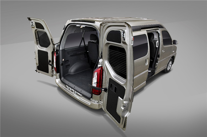 作為商務、商業兩用的新型車,在商務客運場景下,金杯海獅王還加入了對標MPV級別的雙側滑門設計,讓車內成員節省等待時間實現快速上下車;而商業貨運場景下,180°的對開尾門設計,548mm的同級最小地板離地高度,1100kg最大承載,進一步增加車輛的實用性,支持叉車等搬運工具直接作業,最大程度地提升上下貨物的效率。