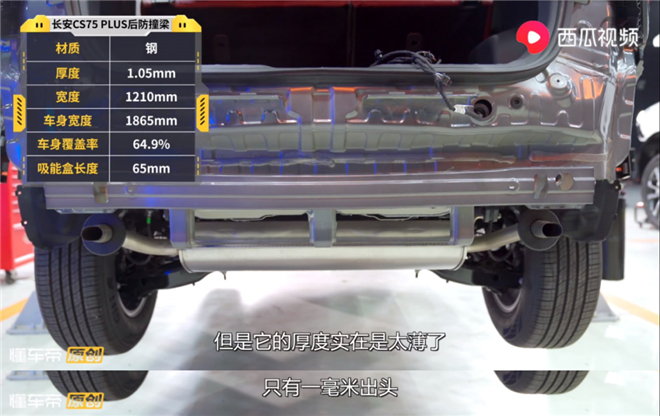 若覺得這些配置差異無關緊要,架不住它“性價比高”的,那你可得小心了,有可能會讓你在某些地方付出代價!在懂車帝對CS75PLUS的拆解中,肉眼可見其后防撞梁僅1mm薄,且與后箱平行,碰撞時起不到太大作用;承壓測試中,最大只能承壓力91公斤,也就是說,一個成年人的體重就可以把它踩彎。作為防止后車追尾的基礎安全防護,CS75PLUS車尾最突出的部位并非防撞梁,而是后尾箱,做的比前防撞梁更孱弱,著實說不過去。你品,仔細品!