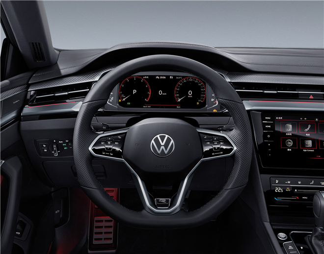 新CC的設計語言基于動感、精致兩大核心要素呈現,整體呈現出激情、個性的動感風格:向前俯沖的車頭、流暢的車頂輪廓,與Coupe 造型共塑低趴的視覺效果,營造蓄勢待發的姿態;全新設計的前保險杠形面,立體感和力量感十足,更富激情與爆發力。經典的無框車門搭配材質尺寸全面升級的19英寸輪轂,彰顯轎跑魅力。“鯊魚鰭”飛翼、高亮黑尾翼及雙邊四出的鍍鉻裝飾尾管,于細節處凸顯強烈的運動基因。此外,一系列全新的R-Line設計元素:R-Line外觀設計、第二代R-Line運動多功能方向盤、帶黃色滾邊及縫線“R”刺繡的座椅等多處R元素,都令動感再度加倍。