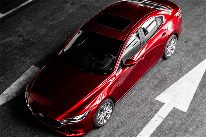 而在涂裝和色彩上,馬自達(dá)的研發(fā)人員圍繞色調(diào)、亮度、涂料顆粒、鋁粉的排列方式等要素,設(shè)計(jì)了一種全新的涂層結(jié)構(gòu):第一層“反射層”,由金屬底漆和規(guī)則排列的鋁粉涂層組成;第二層“透過(guò)層”,由半透明的原色涂層組成;第三層“透明層”,即頂層再噴涂一層透明涂層。在這種新的涂層結(jié)構(gòu)下,光線經(jīng)第一層鋁粉反射后,就會(huì)在第二層彩漆上散發(fā)出艷麗的色彩;當(dāng)沒(méi)有光線反射時(shí),第一層與第二層的顏色又能夠重疊在一起,呈現(xiàn)出更加深邃的色感。正是這些巧妙又“燒錢”的工藝,昂克賽拉才能擁有如此夢(mèng)幻效果的車身外觀。